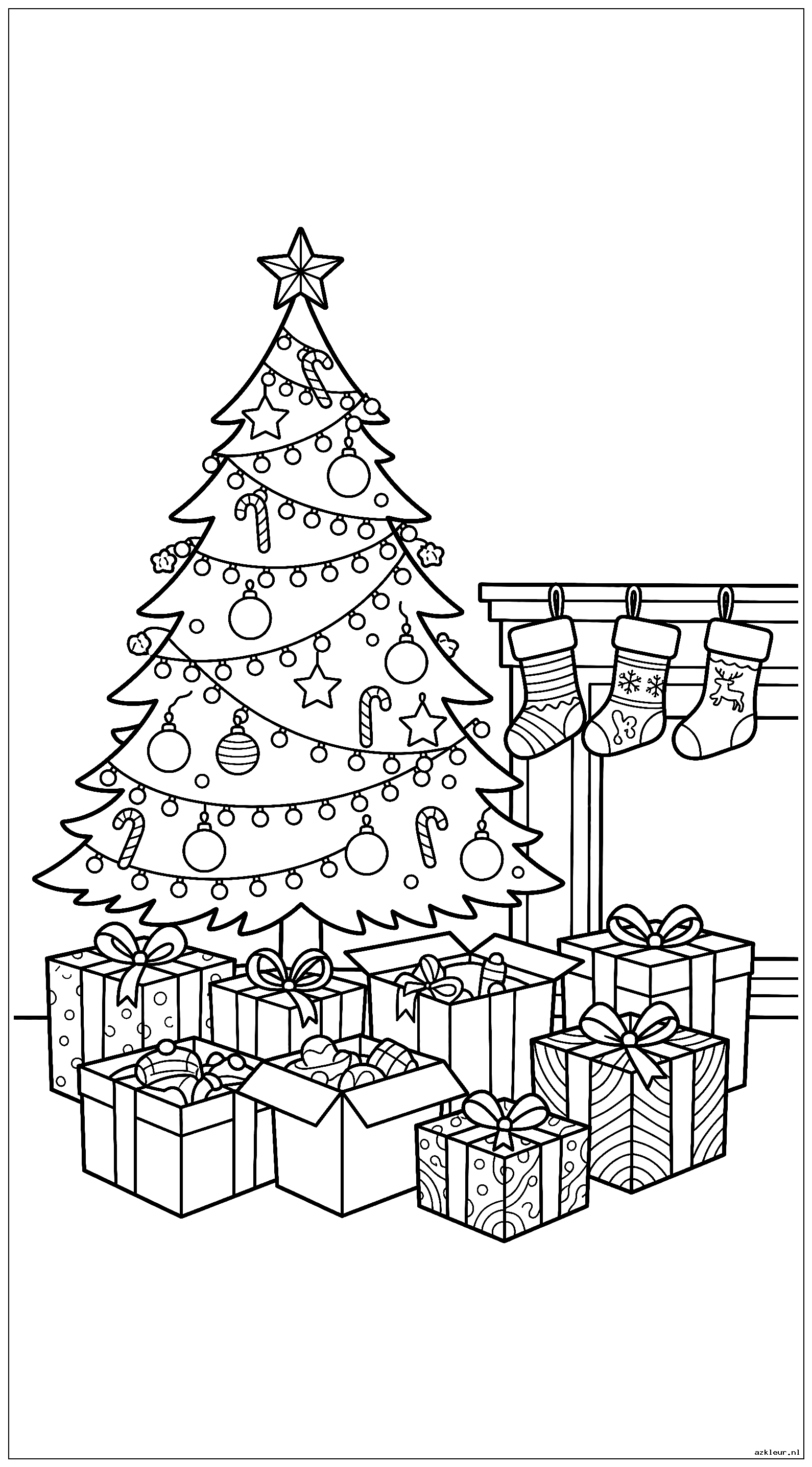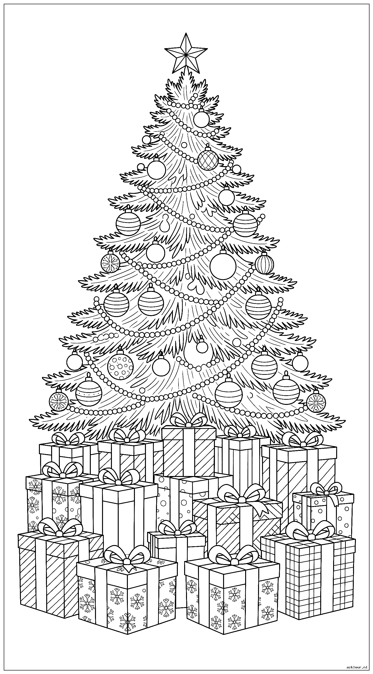 Wat is er magischer dan een berg ingepakte cadeaus onder een prachtig versierde kerstboom? Deze kleurplaten tonen sfeervolle taferelen met schitterende kerstversiering en stapels cadeaus onder weelderige kerstbomen. Perfect om de voorpret voor kerst nog groter te maken!