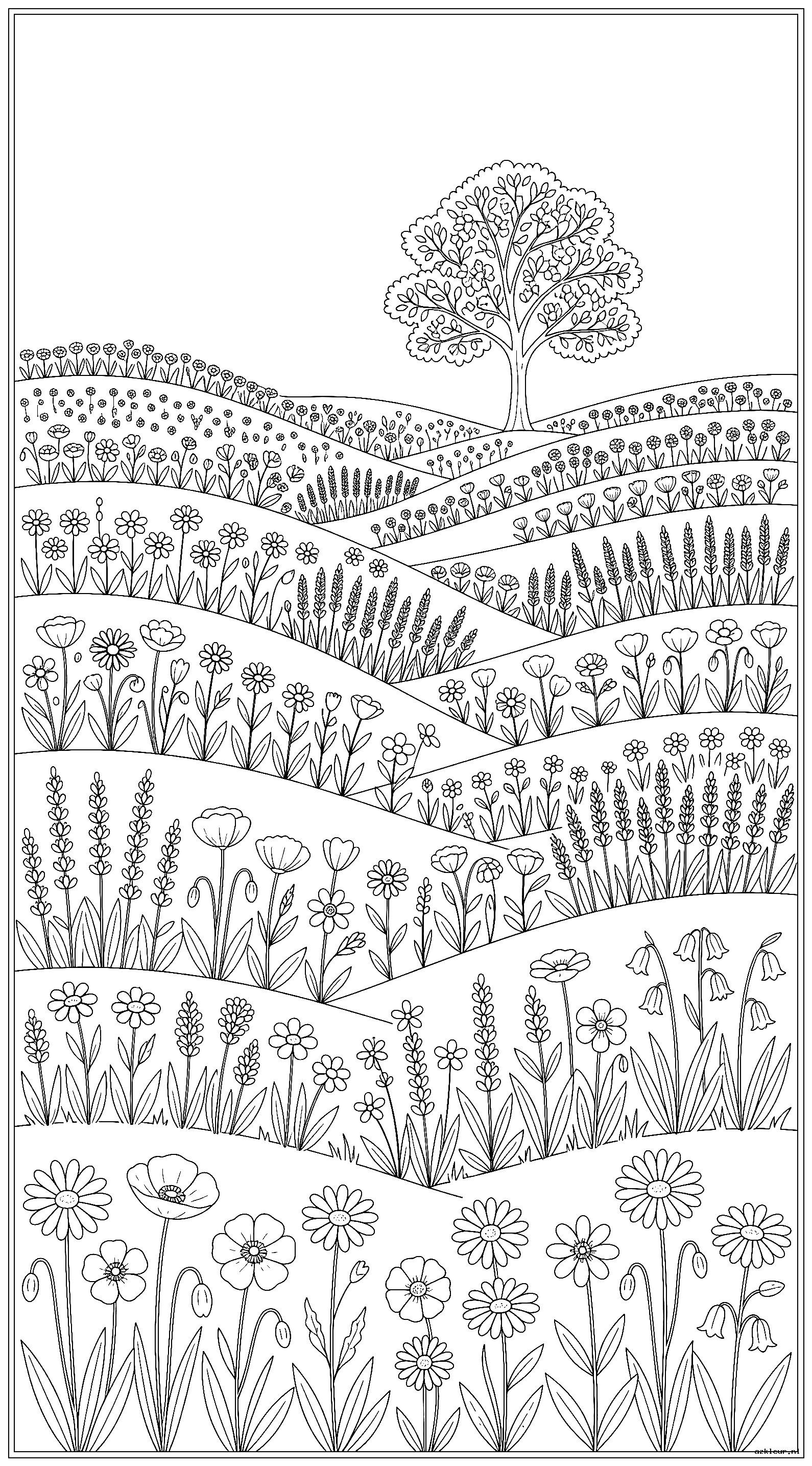 Voor wie houdt van overzichtelijke en rustige kleurplaten bieden we deze serie met prachtige bloemenweiden. De tekeningen zijn bewust eenvoudig gehouden, met duidelijke lijnen die perfect zijn voor zowel beginners als gevorderden. Deze kleurplaat grote bloemen met eenvoudige lijnen nodigen uit tot creativiteit en zijn geschikt voor alle leeftijden.