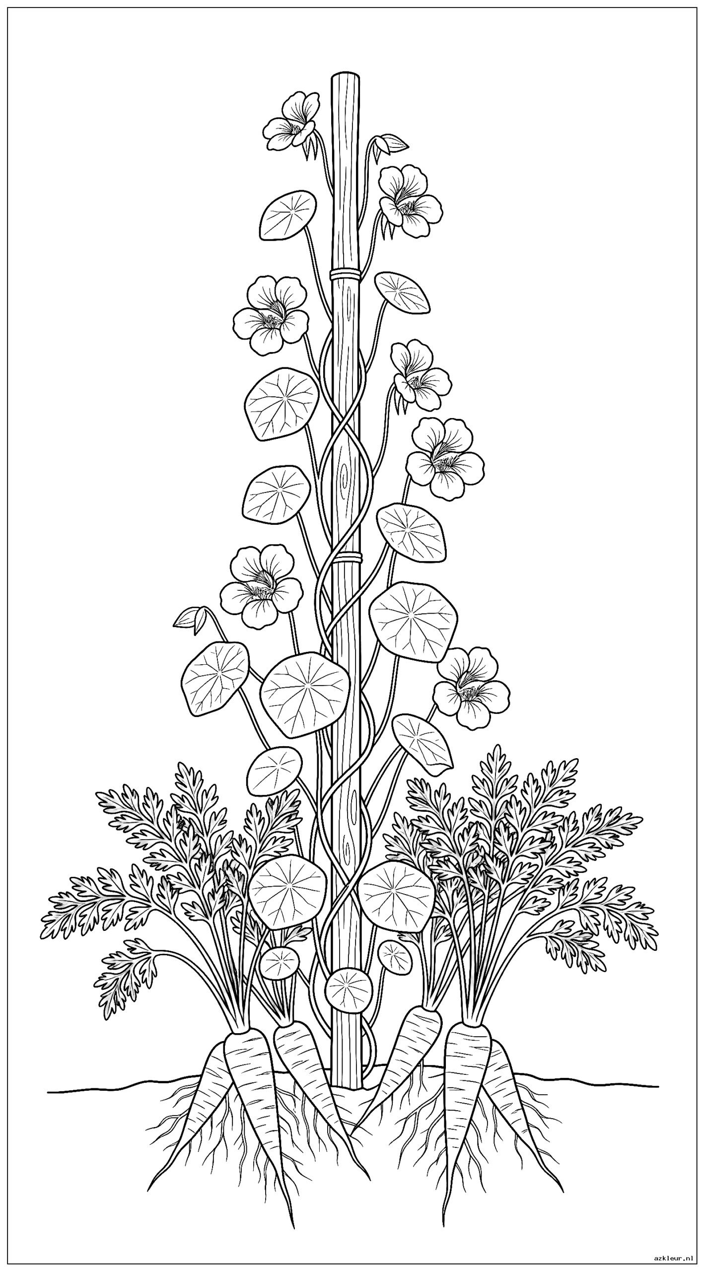 Ontdek hoe bloemen en groenten perfect samengaan in deze educatieve kleurplatenserie. Deze unieke combinatie laat zien hoe verschillende tuinbloemen kunnen worden gecombineerd met moestuinplanten voor een gezonde en productieve tuin. De kleurplaat bloemen en groenten voor kinderen zijn speciaal ontworpen om kinderen te leren over combinatieteelt en de natuurlijke symbiose tussen verschillende plantensoorten.