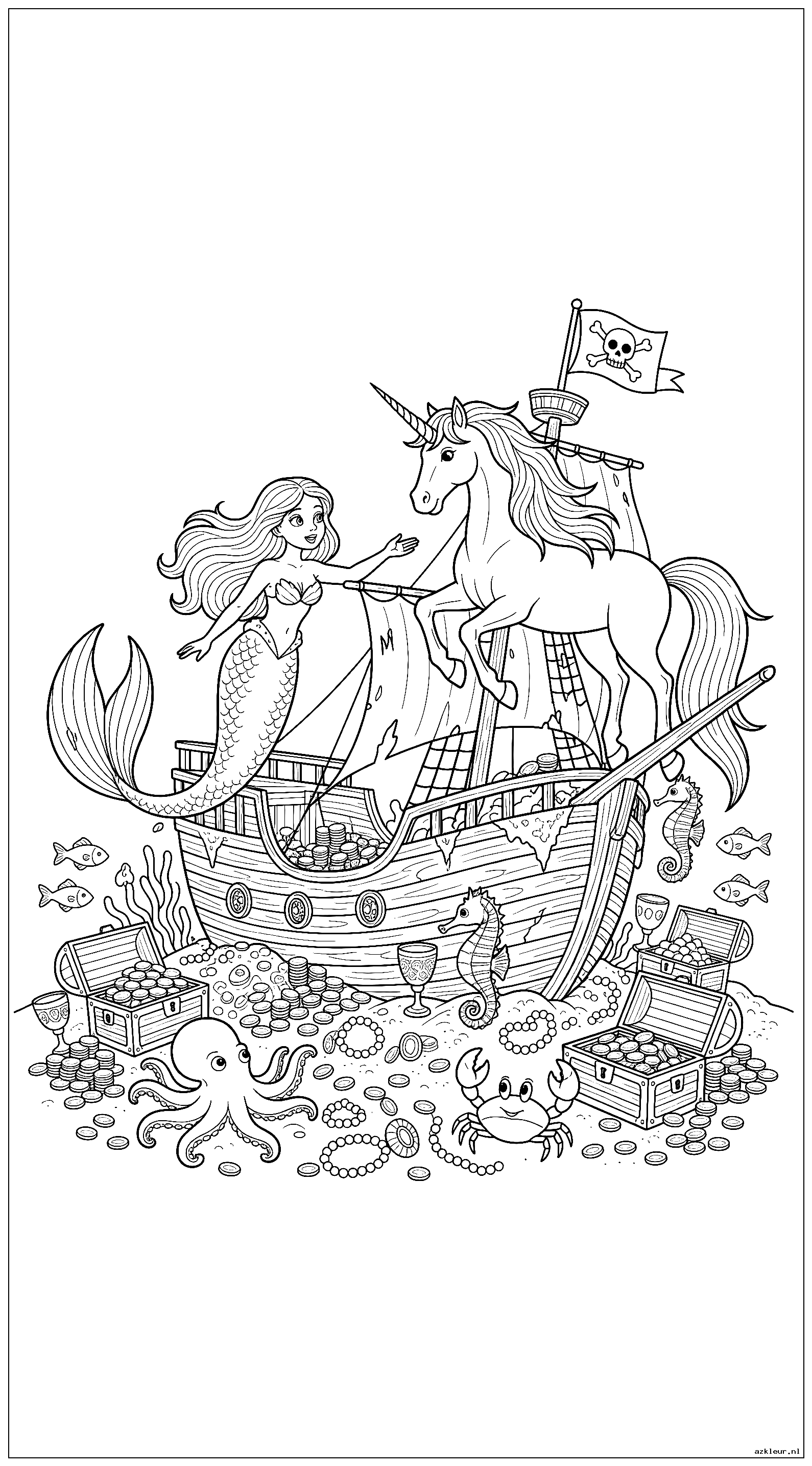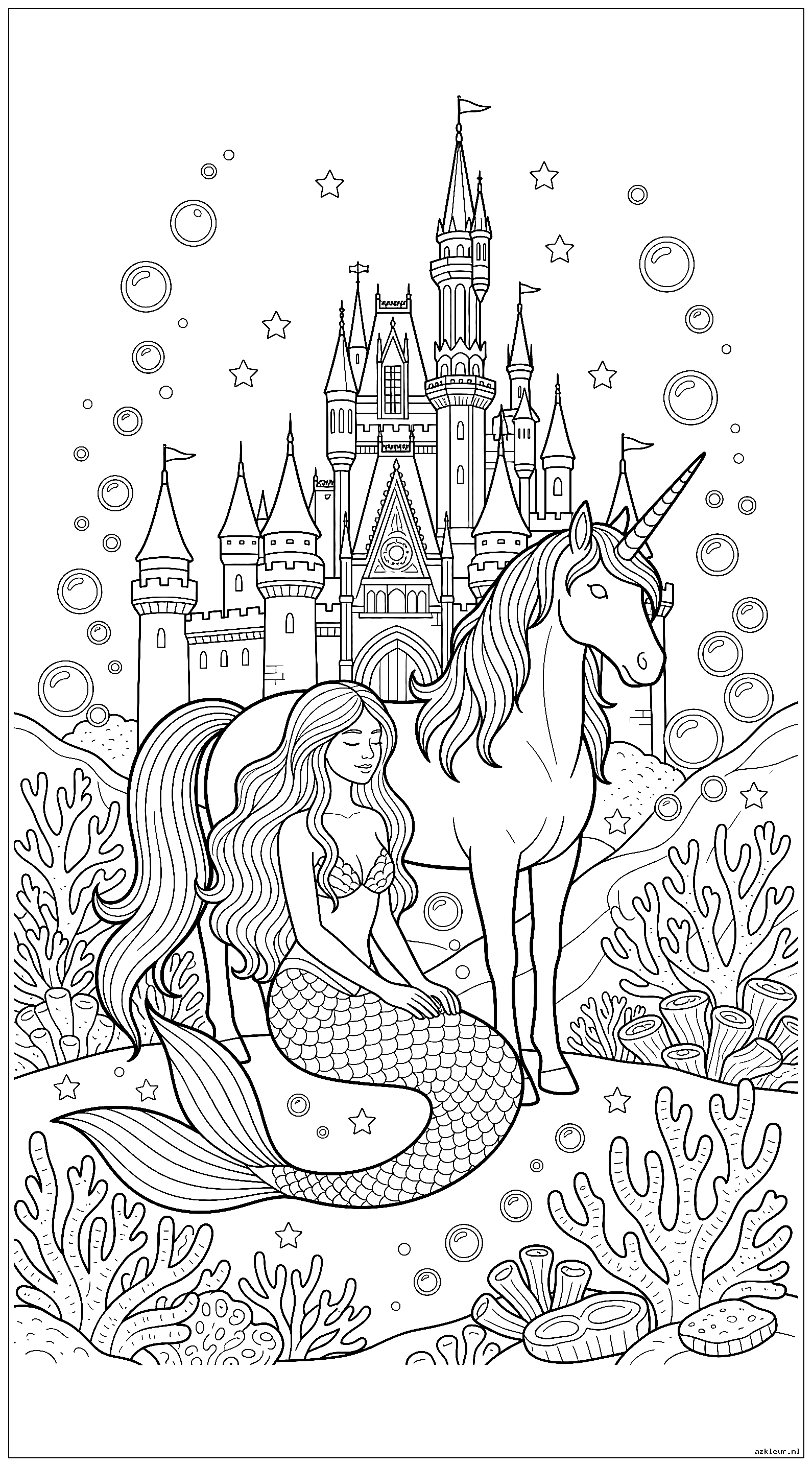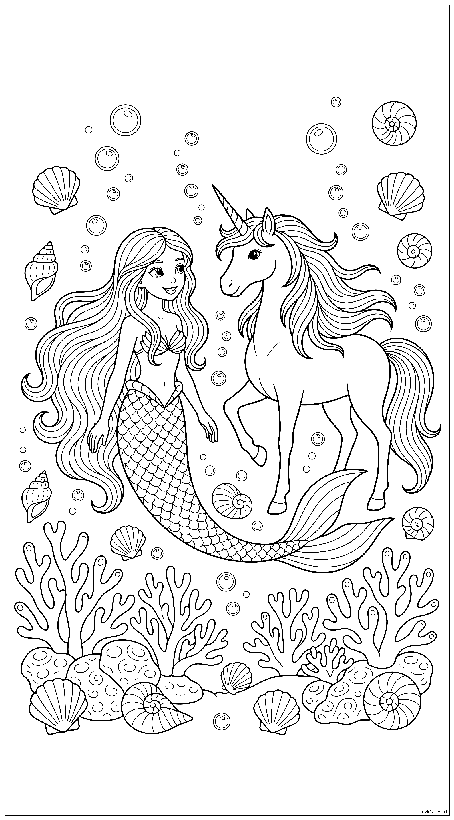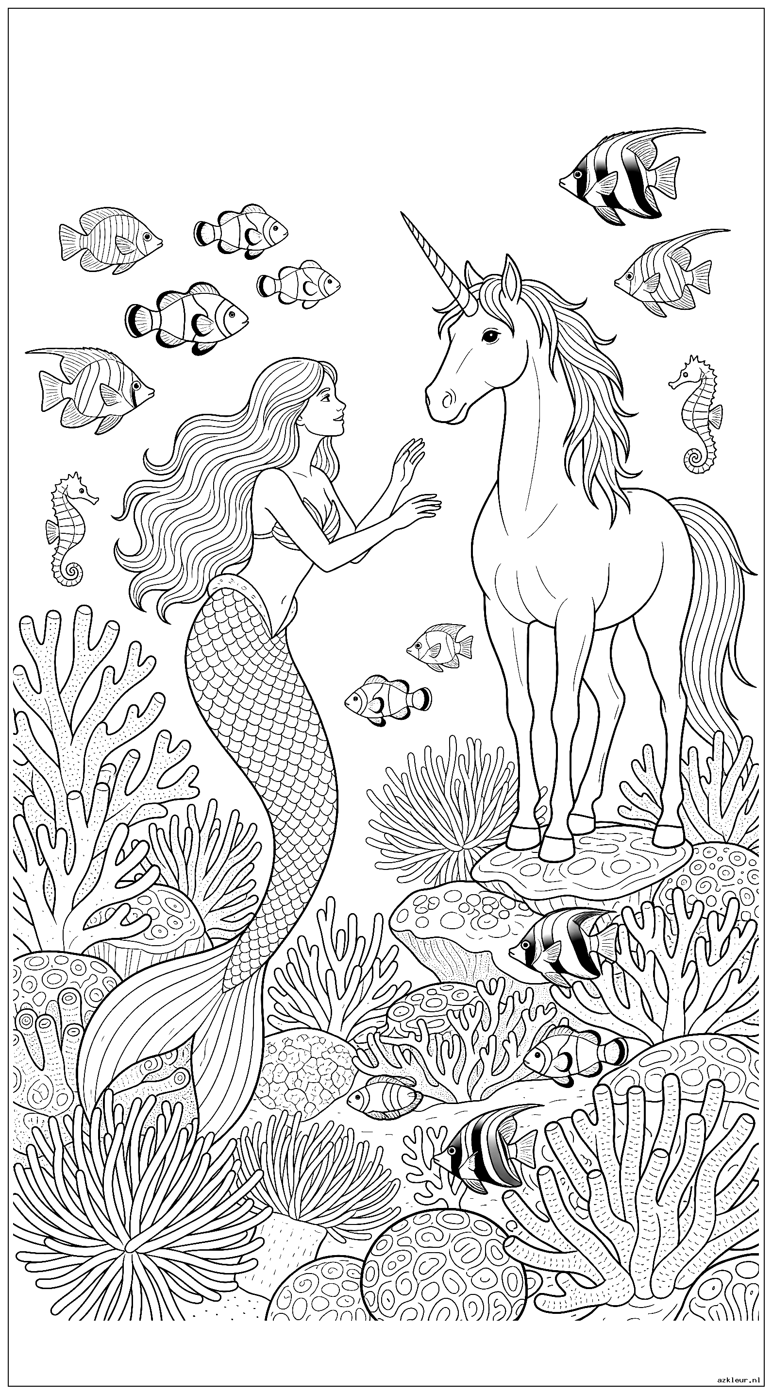 Ontdek spannende zeemeermin verhalen en eenhoorn avonturen in deze serie kleurplaten. Hier zie je hoe deze magische wezens samen op ontdekkingstocht gaan, schatten zoeken en vriendschappen sluiten. Voor nog meer onderwateravonturen, bekijk ook onze kleurplaat zeemeermin met zeesterren.