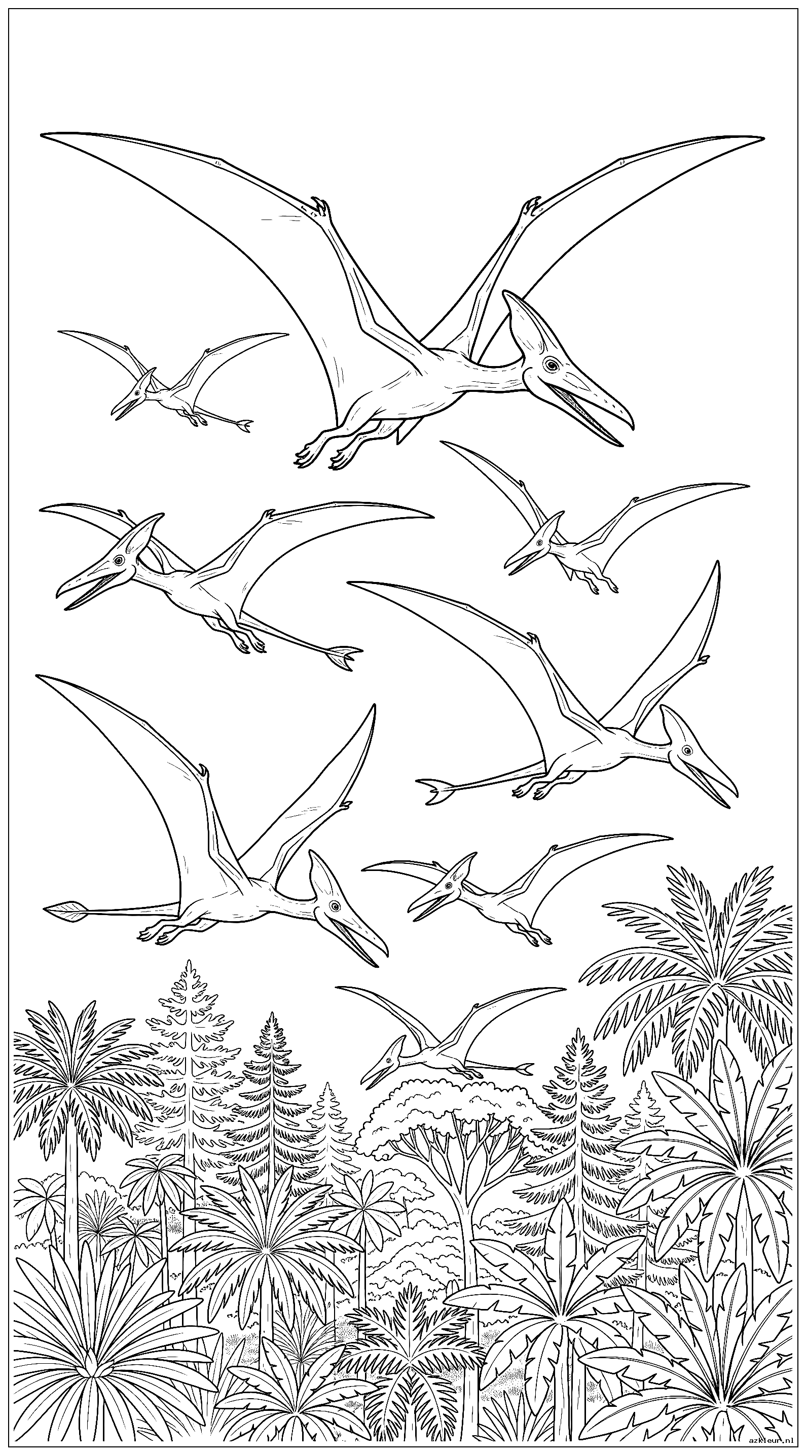 Ontdek de fascinerende wereld van vliegende dinosaurussen met onze collectie pterosauriërs. Van de majestueuze Pteranodon tot de wendbare Pterodactyl, deze kleurplaten laten zien hoe deze bijzondere reptielen door de prehistorische luchten zweefden.