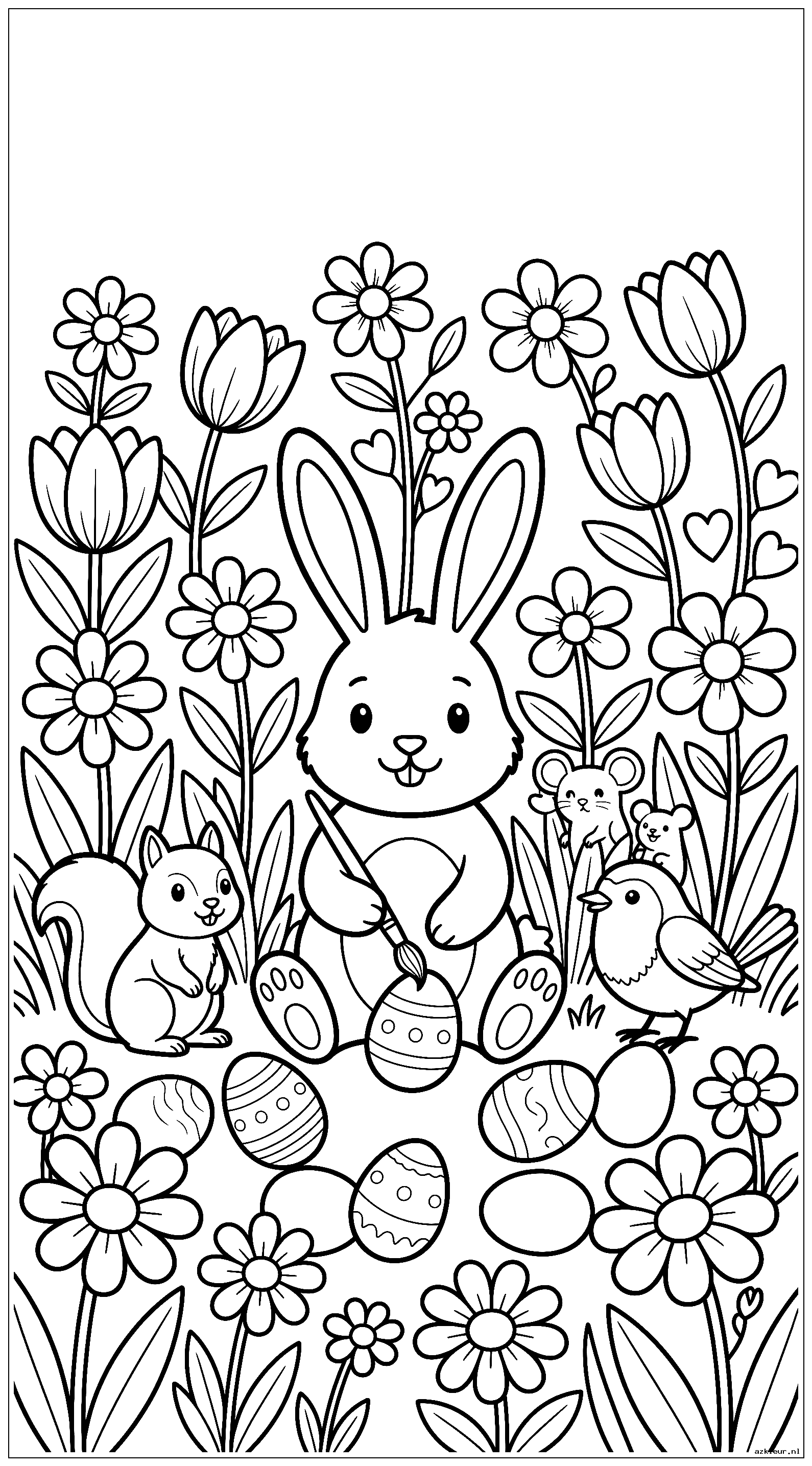 Ontdek onze gevarieerde collectie paashaas kleurplaten, perfect voor alle leeftijden! Van eenvoudige bunny tekeningen voor de allerkleinsten tot gedetailleerde paashaas illustraties voor oudere kinderen. Deze kleurplaat pasen voor kinderen sectie bevat vrolijke konijntjes met paaseieren, dansende paashazen en zelfs grappige bunny’s met mandjes vol verrassingen.
