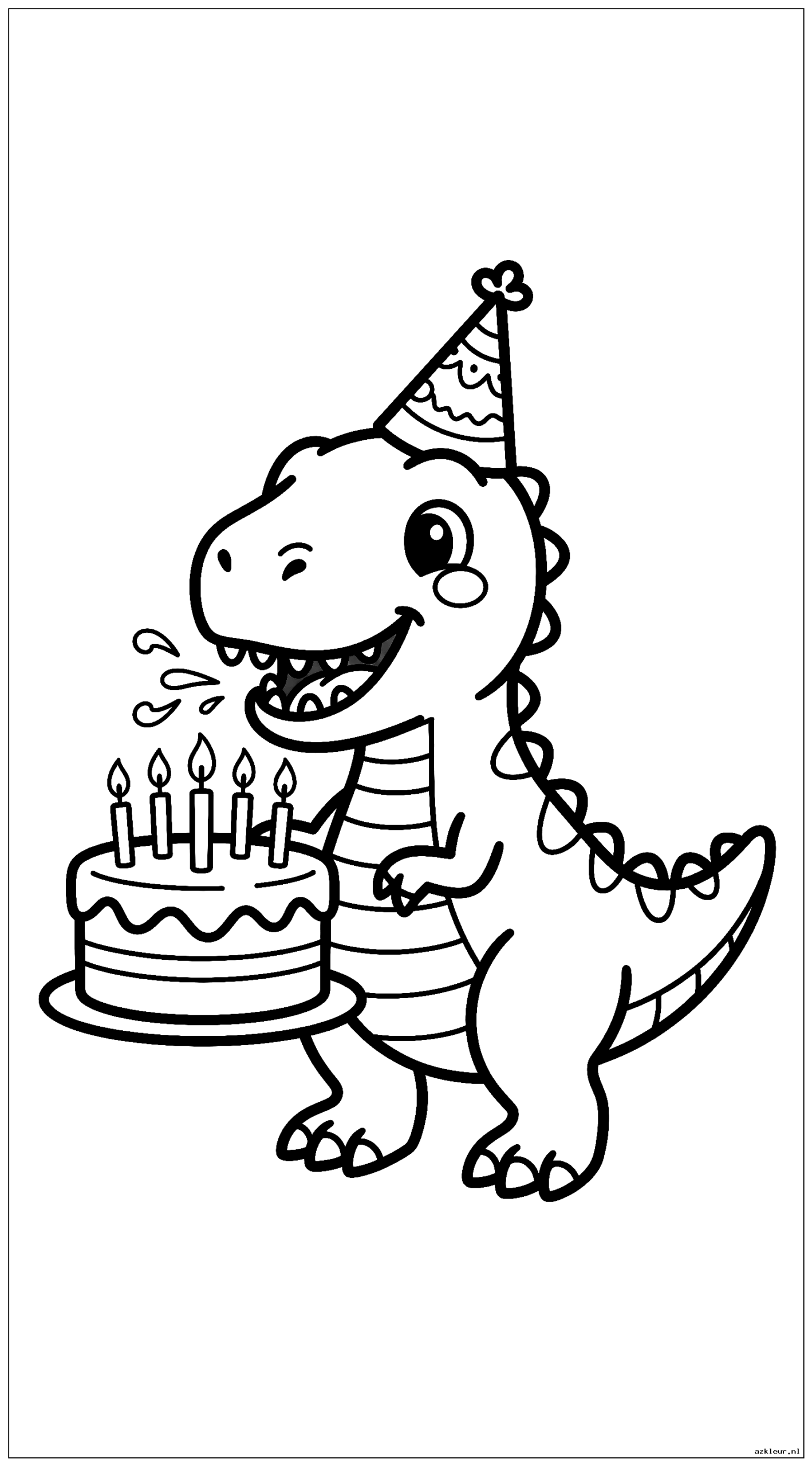 Ontdek onze collectie Dinosaurussen Kleurplaten voor Feestjes, vol vrolijke en feestelijke momenten! In deze serie zie je onze prehistorische vrienden genieten van leuke party-activiteiten. Je vindt hier dinosaurussen die verjaardagen vieren, cadeautjes uitpakken, dansen op muziek en samen spelletjes spelen. Perfect voor een gezellige en speelse sfeer!